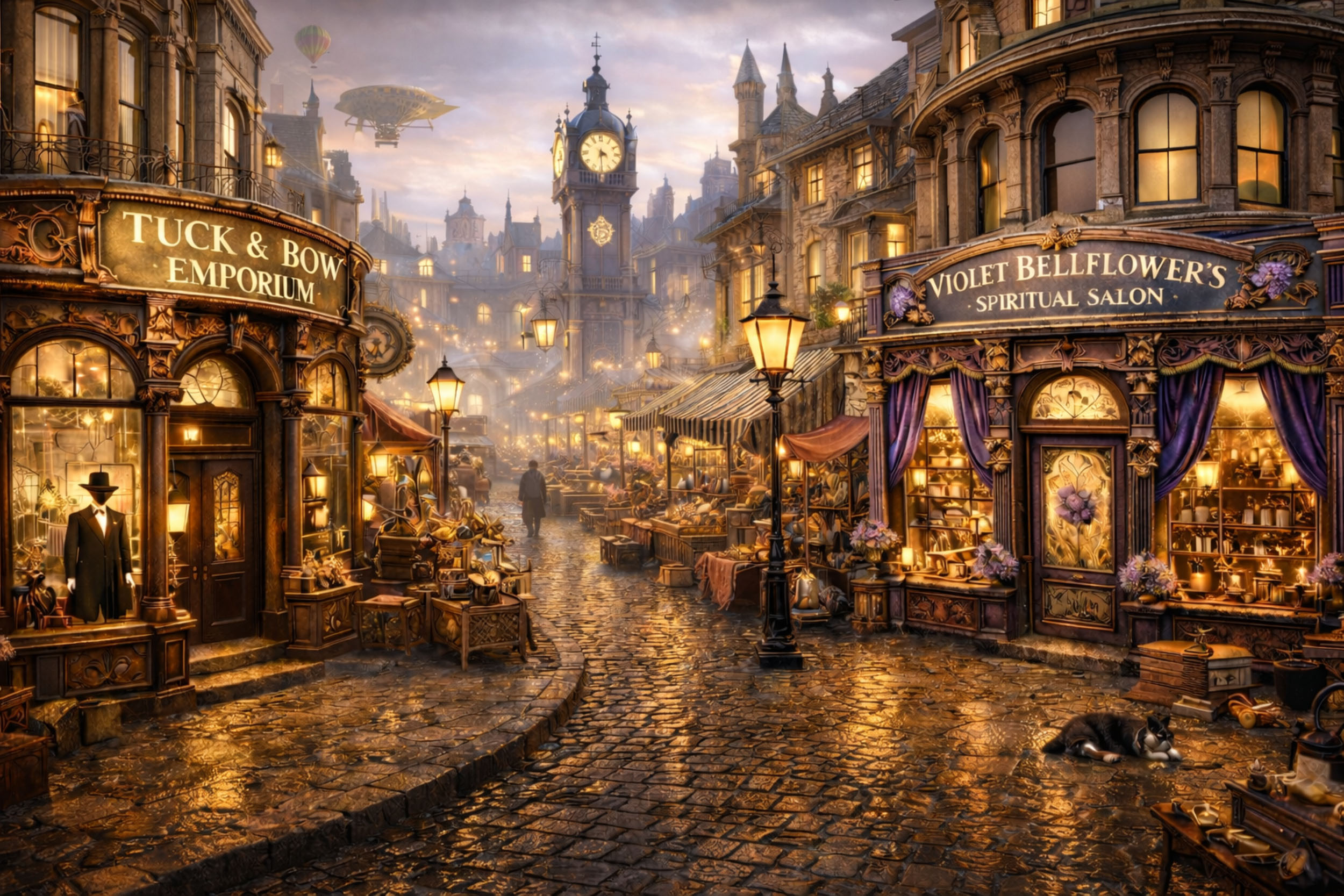 Explore our shoppes and the curious characters who keep them running smoothly. Each shoppe on Spinsters Row boasts its own curated collection of fine goods and wares. Can you guess which shoppekeeper is rumored to have poisoned several past lovers with a delectable roast duck recipe? Or which one is actually a reincarnated rock god?